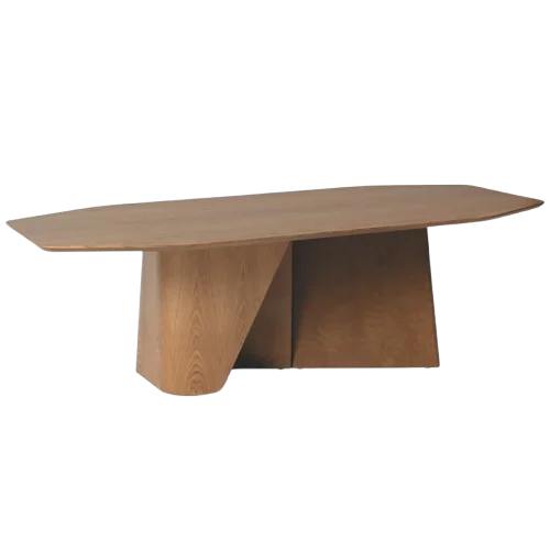 MESA DE JANTAR REVESTIDA EM LÂMINA NATURAL DE MADEIRA E RECOURO NO CENTRO